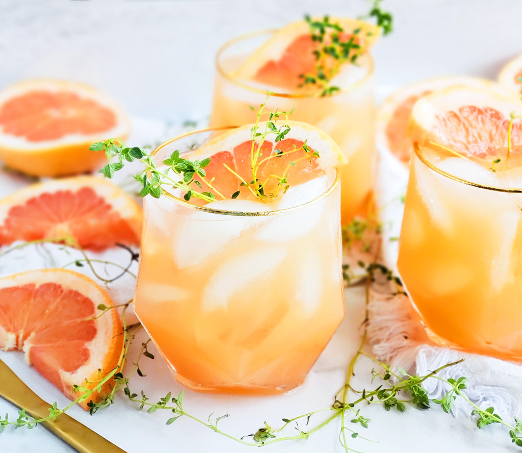 • Garnish with a slice of grapefruit and thyme, if desired. Enjoy!